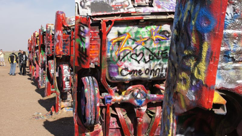 Heute ging es raus aus Amarillo um neben der Interstate die Cadillac Ranch zu besuchen. Diese Autos wurden von 2 Künstlern in die Erde verbuttelt. Das Grundstück stellte der Rancher zur Verfügung! Leider sind die Fzg schon sehr in Mitleidenschaft gezogen worden und der Rost verhilft ihnen zu einem Ende. Bei Adrian erreichen wir den Midpoint, wir habe bereits die halbe Strecke geschafft! Danach ging es über die Grenze nach New Mexico. Hier wird die Landschaft felsiger, steppiger und die Erde und Felsen färben sich auf rotbraun. In Santa Fe haben wir unser Etappenziel nach 316 Meilen (508 Km) erreicht.