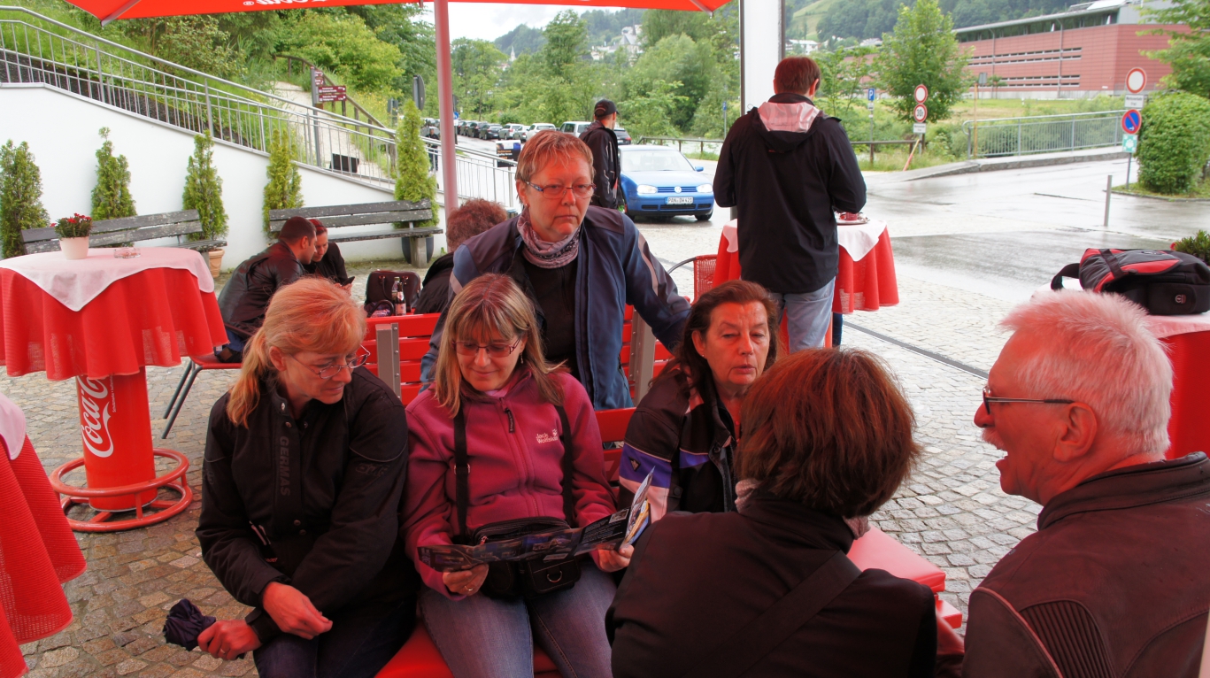 Nach unserem Urlaub in Vorarlberg, reisten wir mit Rita & Wolfgang, Marie Luise & Werner von Bayern aus an. Wir fuhren teilweise im Regen und das Wochenende wurde leider auch nicht besser. Aber wir konnten doch am Samstag eine kleine Tour nach Berchtelsgarden ins Salzbergwerk machen und es kam sogar die Sonne mal kurz raus!Das spielte unserer Laune aber keine Rolle und wir plauderten lang in die Nacht hinein!Es ist immer wieder schön, mit unseren Rout 66 Freunden beisamen zu sein! Leider fehlten unsere schweizer Freunde! Die Route 66 Gruppe bestand aus:Wolfgang & Rita (BRD), Walter & Ruth (CH), Peter (BRD), Richard & Renate (BRD), Werner & Marie Luise (BRD), Herbert & Brigitte (A),und Birgit & Sigi (A) !